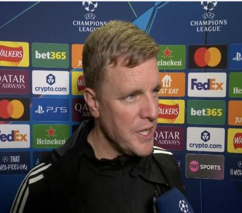 北京时间10月22日,欧冠联赛阶段第3轮,纽卡斯尔联3-0本菲卡。赛后,纽卡斯尔联主教练埃迪-豪接受了采访。