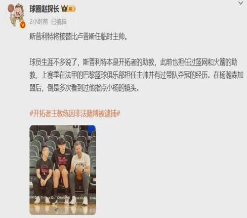 下一篇: 斯普利特接任比卢普斯引热议!他对杨瀚森更加了解,有望委以重任