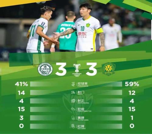 最终,北京国安客场3-3战平大埔。