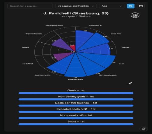 北京时间10月27日凌晨进行的法甲第9轮中,斯特拉斯堡客场1-2不敌里昂。本场比赛中斯特拉斯堡队的阿根廷射手帕尼切利再度建功,为球队攻入1球。这位现年23岁的球员在本赛季法甲开赛以来的9轮中已经打入8球,同时多项进攻数据领跑法甲。