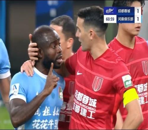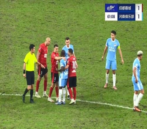 而其他河南队球员也纷纷找主裁和第四官员投诉,如果河南队赛后就蓉城球迷的歧视行为上诉,恐怕俱乐部也将因此受到重罚。