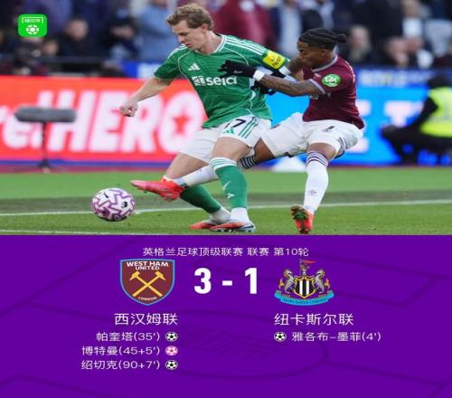西汉姆31纽卡,帕奎塔世界波,绍切克建功,墨菲破门难救主