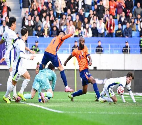 青岛海牛(橙)击败武汉三镇多少占了赛程的光