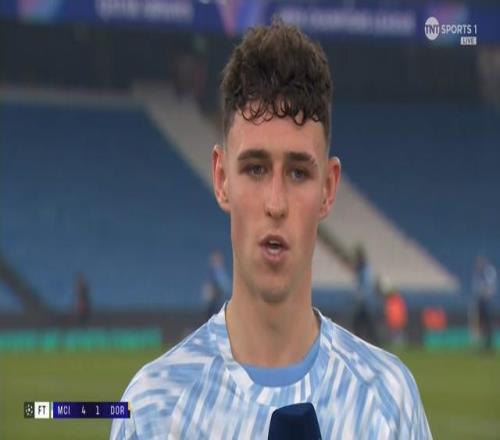 在欧冠联赛阶段第4轮上演梅开二度帮助曼城主场4-1大胜多特蒙德之后,福登接受了来自TNT体育的采访。