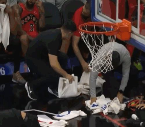 这起事件发生在11月9日Xfinity移动竞技场,猛龙队以130-120不敌费城76人队的比赛中。当时第三节还剩6分25秒,英格拉姆摔出的水瓶击中了一名赛事工作人员,且导致比赛中断以清理场地积水。