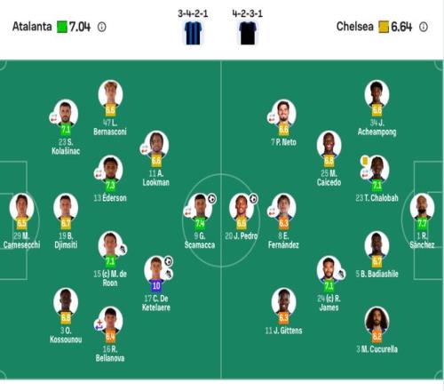 亚特兰大首发:29-卡尔内塞基、3-奥迪隆、23-科拉希纳茨(72’69-阿哈诺尔)、19-吉姆西蒂、47-贝尔纳斯科尼、17-德凯特拉雷、13-埃德松-席尔瓦(87’6-尤纳斯-穆萨)、16-贝拉诺瓦(17’77-扎帕科斯塔)、15-德容恩、11-卢克曼(87’8-帕萨利奇)、9-斯卡马卡(72’90-尼古拉-克尔斯托维奇)。