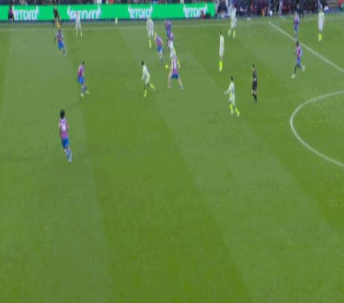 事实也的确如此,水晶宫开场之后不断创造出破门良机。比赛的第16分钟,沃顿直塞,皮诺单刀突入禁区右脚劲射击中横梁。