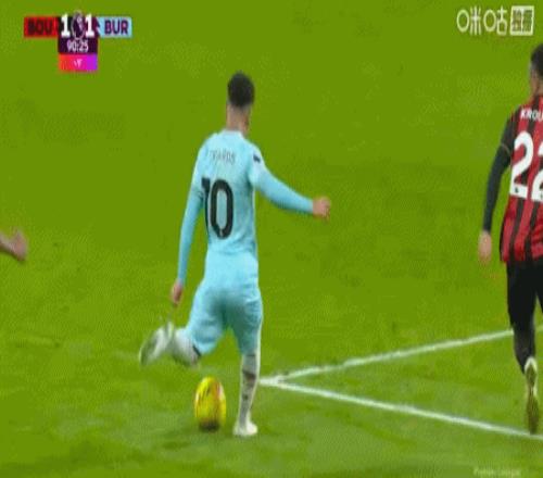 第90分钟,爱德华兹传中,布罗亚头球破门扳平比分,伯恩利1-1