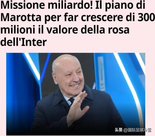 辞旧迎新之际,《米兰体育报》以“10亿欧元的使命”为题,指出:橡树资本给马洛塔的任务,是让国际米兰的价值——也就是球员的总价值提升3亿欧元,达到十位数欧元