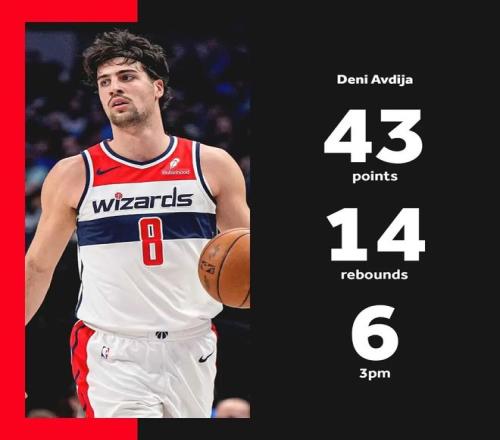 4场比赛,场均34.3分7.8篮板8.0助攻,同期得分联盟第三,三项命中率50.0%/40.0%/82.0%,真实命中率64.6%——没考古,但也应该是阿夫迪亚不到一周时间里打出的最佳表现了。