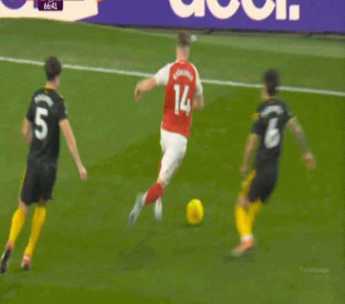 这个任意球的来源,就是多尔古对萨卡的犯规: