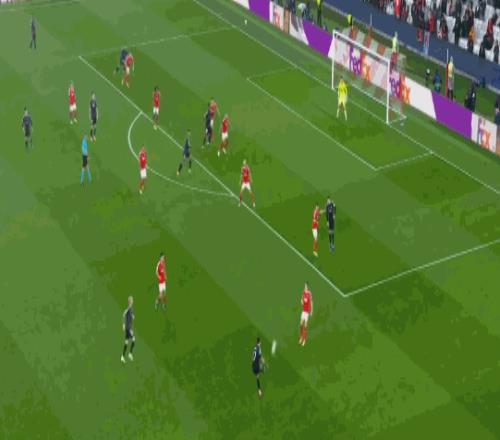 第79分钟,罗德里戈低射,本菲卡门将将球扑出