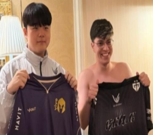 体育资讯10月24日称 VKS官方更新动态,分享Disamis与Canyon交换队服,配文如下: "巴西选手“Canyon与”韩国选手“Disamis