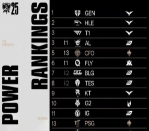当前全球实力榜:AL、T1并列第3、CFO升至第5!BLG降至第7、TES第8