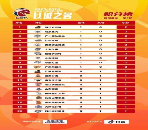 12月12日至14日,2025—2026赛季CBA联赛常规赛第一轮全面展开。北京队、青岛队、广州队、辽宁队、宁波队客场取胜,其余5场比赛均为主队获胜。本轮比赛过后,卫冕冠军广厦队暂列积