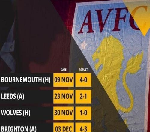英超第17轮,维拉将主场对阵曼联,维拉近6场英超全胜,他们上一次取得顶级联赛7连胜是在1990年。维拉最近6场英超比赛全部取得胜利,先后击败伯恩茅斯(4-0)、利兹联(2-1)、狼队(1-0)