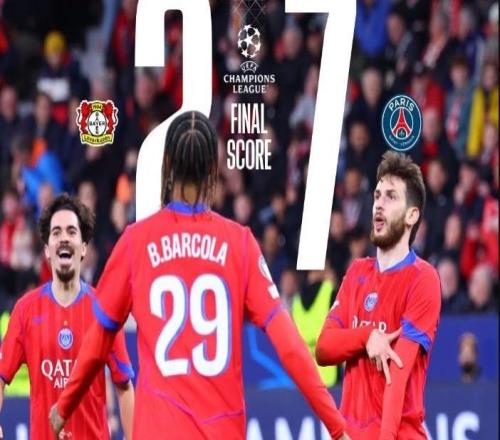 雷速体育10月22日宣 北京时间今天凌晨,欧冠联赛阶段第三轮,巴黎圣日耳曼客场7-2大胜勒沃库森。此役杜埃梅开二度、帕乔、克瓦拉茨赫利亚、门德斯、登贝莱和维蒂尼亚各打入1球