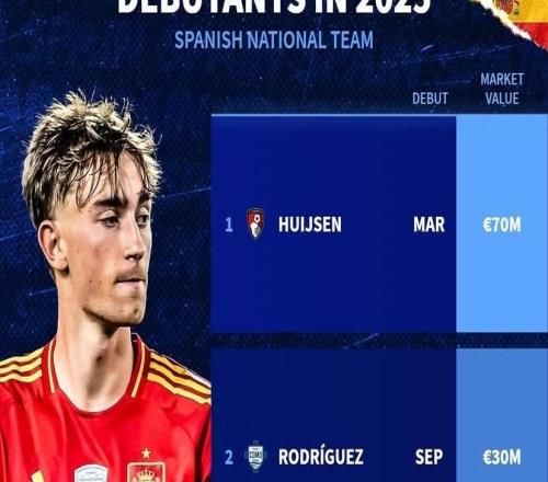 北京时间10月16日,德转列出了2025年完成西班牙国家队首秀的球员,今年到目前为止德拉富恩特仅给了三名球员完成国家队首秀的机会,今夏转会皇家马德里的赫伊森领衔。德转列2025年