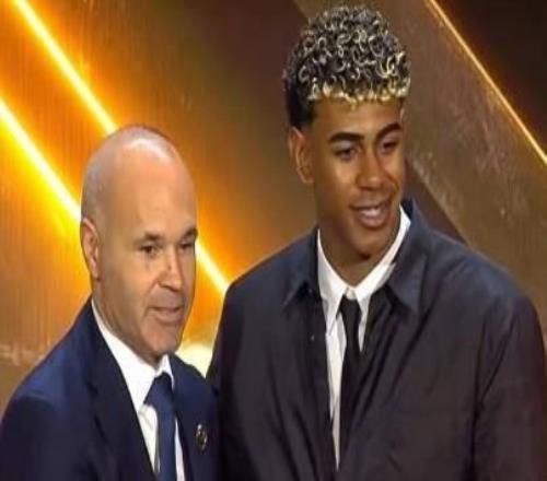 北京时间12月28日,2025年度环球足球奖颁奖典礼在迪拜举行,其中,亚马尔获得了年度最佳西甲U23球员奖。颁奖典礼上,亚马尔获得了2025年度西甲最佳U23球员奖,巴萨传奇伊涅斯塔亲自为