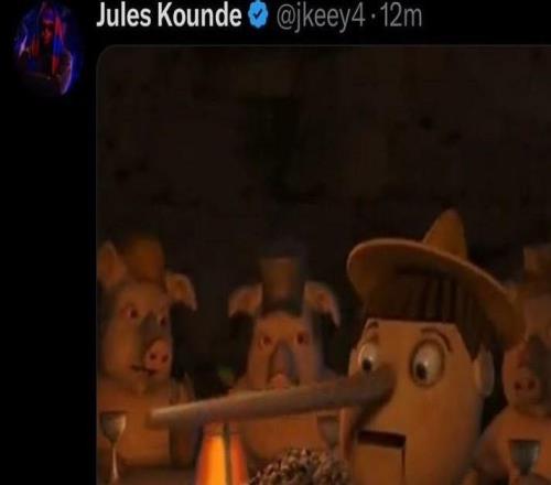 记者称孔德受伤将缺战西超杯,球员社媒发匹诺曹表情回应