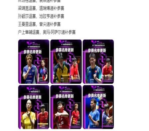 WTT蒙彼利埃冠军赛参赛球员更新:孙颖莎、王楚钦等人退赛